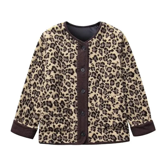 ModeGeist | Cardigan - Übergröße - Weichstoff - Leopardenmuster - Knöpfe und Rippenkanten
