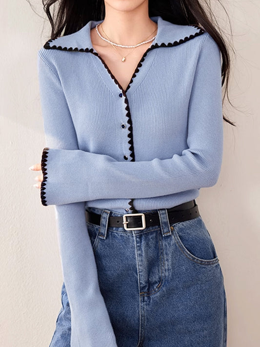 ModeGeist | Cardigan mit Kontrastkante und Rüschendetails Schlanker Schnitt Feminin und Schick