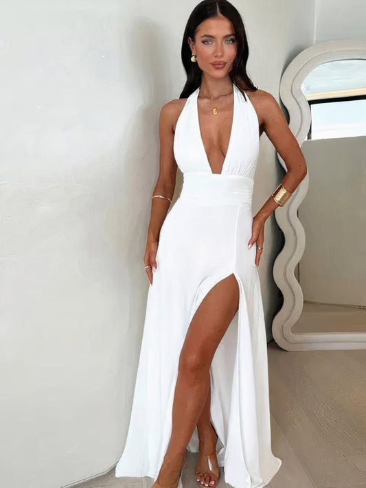Trägerkleid mit tiefem V-Ausschnitt und Schlitz - Ilyza