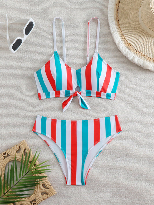 Trendiger Damen Bikini mit Streifen und verspieltem Knotendetail