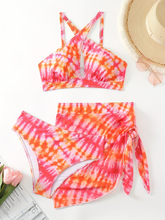 Trendiger Damen-Bikini mit Wickelrock und angesagtem Muster
