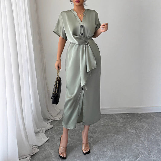 Wickel-Midikleid für Damen mit V-Ausschnitt, im angesagten MODEGEIST