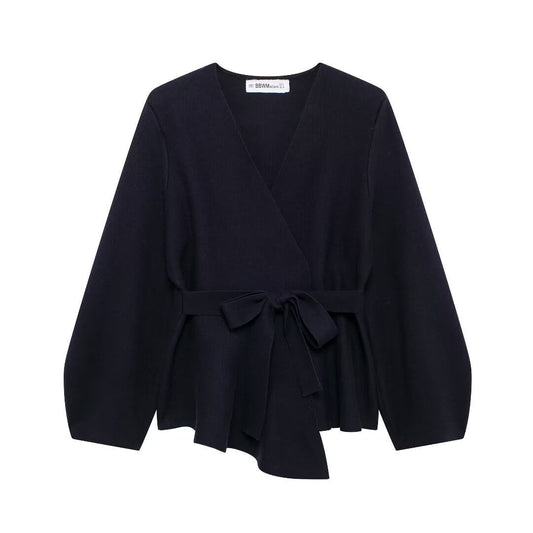 Wickelbluse für Damen mit Schnürung, lange Ärmel, MODEGEIST