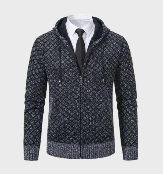 Xsander: Schlichte Argyle-Kapuzenjacke mit durchgehendem Reißverschluss