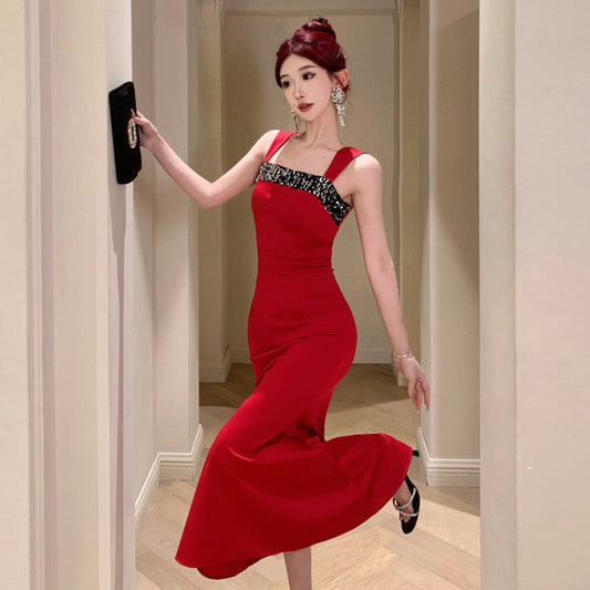 Fudus ärmelloses Quadratisches-Hals-Kleid, sexy quadratischer Ausschnitt