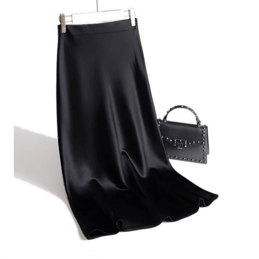Fudus Schwarzes Satin-Partykleid mit V-Ausschnitt und offenem Rücken