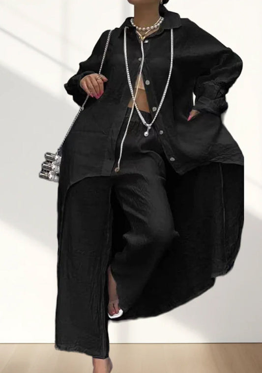 Leana: Modernes, unifarbenes Zweiteiler-Set für Damen mit Langarm-Shirt und Hose