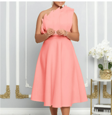 Das elegante Abendkleid Velgunde mit One-Shoulder-Design und ausgestelltem Schnitt ist ideal für besondere Anlässe.