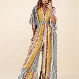 Dieser lässige, elegante Damen-Jumpsuit im Boho-Stil ist perfekt für Sommerabende und Festivals. Sein fließender Schnitt und die luftige Passform bieten maximalen Komfort. Florale Muster und leichte Stoffe betonen den Boho-Stil.