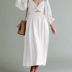 Damen-Midikleid mit Cut-Outs und Puffärmeln