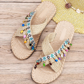Damen-Sandalen mit stylischen Perlenfransen...