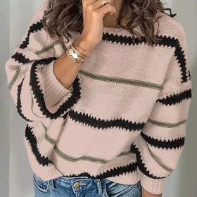 Dieser gestreifte Winterpullover vereint Komfort und modernes Design. Der lockere Schnitt und das elegante Muster passen zu Jeans oder Röcken. Perfekt für kalte Tage.