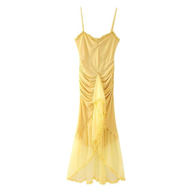 Spaghettiträger-Kleid in Gelb. Einteiler. Patchwork/Splicing.