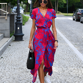 Elowens florales Kleid mit Taillengürtel verbindet feminine Anmut und modernes Flair. Das lebhafte Blumenmuster verleiht Farbe und Charme, der Taillengürtel sorgt für eine schmeichelhafte Silhouette. Das knielange Design ist chic und vielseitig, ideal für verschiedene Anlässe. Der weiche, atmungsaktive Stoff und der trendige Taillengürtel verbinden Komfort und Mode. Elowen: Modernes, weibliches Design für viele Anlässe.