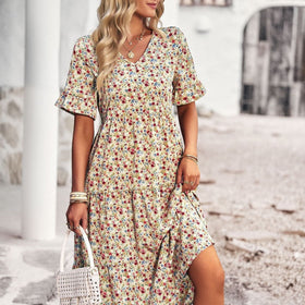 Das geblümte Midikleid vereint verspielte Frische mit zeitloser Eleganz. Die zarten Blumenmuster verleihen dem Kleid eine romantische Note und setzen feminine Akzente. Ideal für stilvolle Auftritte in blumiger Umgebung. Vielseitig tragbar: Sommerpicknick, Gartenfest oder Abendessen – Eraliza passt immer und verleiht einen charmanten Look.