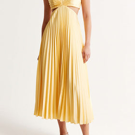 Faltenkleid mit V-Ausschnitt, offenem Rücken und Trägern von Fudus