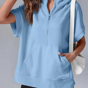 Fudus Kurzarm-Pullover mit Halb-Reißverschluss