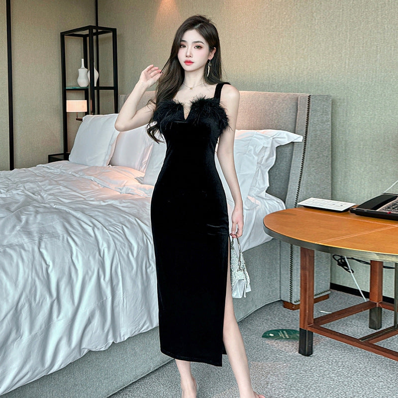 Fudus Samt-Kleid: Lange Meerjungfrau-Silhouette...