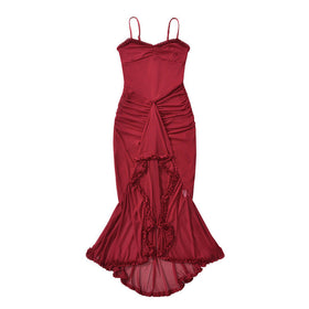 Fudus Trägerkleid: Asymmetrisches Netzkleid mit Schlitz