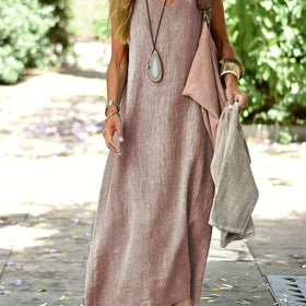 Dieses elegante Sommerkleid aus Baumwolle und Leinen vereint Stil und Komfort für jede Gelegenheit. Mit einem V-Ausschnitt und ärmellosem Design bietet es eine raffinierte Optik, perfekt für legere Sommertage, Urlaub oder Strandbesuche. Das atmungsaktive Material hält kühl, der modische Schnitt sorgt für einen schicken Look.