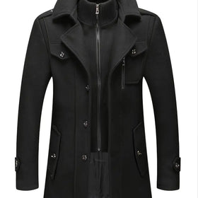 Für den eleganten Mann. Dieses moderne Meisterwerk vereint die Wärme eines Rollkragenpullovers mit der Eleganz eines Wollmantels/Trenchcoats.