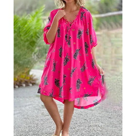 Kurzärmliges bedrucktes Fudus Plus-Size Kleid mit V-Ausschnitt