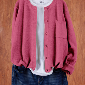 Der lässige Cardigan Sophie in einem sanften Rosaton ist der perfekte Alltagsbegleiter. Mit seinem angenehmen Material und dem lockeren Schnitt bietet er nicht nur den besten Tragekomfort, sondern auch eine verspielte Eleganz. Ideal für Frauen, die in jeder Situation sowohl bequem als auch stilvoll auftreten möchten.