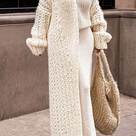 ModeGeist | Chunky Strick Lange Strickjacke Offene Front Maxi Pullover Mantel