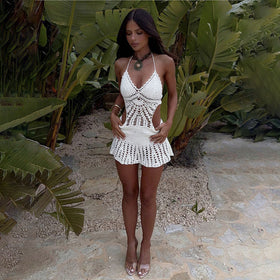 Das Women's Crochet Halter Swim Cover-Up Dress von MODEGEIST wertet Ihren Strandlook auf. Ein atemberaubendes Kleid für modebewusste Frauen, die ihren Stil am Strand zeigen möchten.