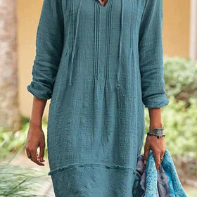Genießen Sie die Anmut eines atemberaubenden Vintage-Kleids mit V-Ausschnitt. Dieses klassische Kleid verbindet Vintage-Ästhetik mit modernem Komfort und schmeichelt allen Körpertypen. Es strahlt zeitlosen Charme und Eleganz aus.
