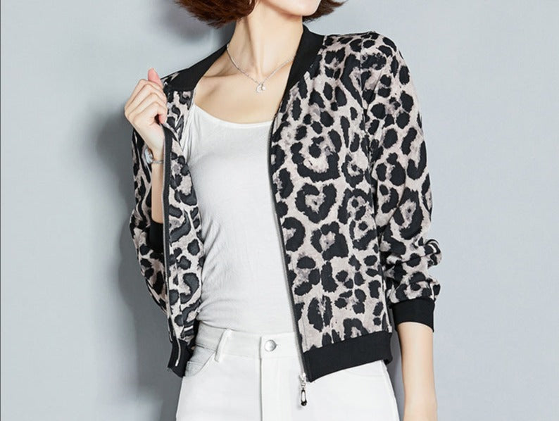 Trendige kurze Bomberjacke von Avelena mit Leopardenmuster