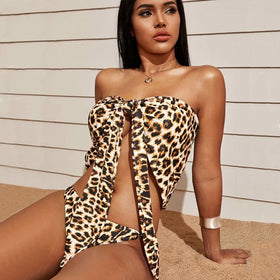 Damen Bandeau-Bikini-Set im trendigen Leo-Design von MODEGEIST – perfekt für Strand und Pool. Komfort und Eleganz vereint.