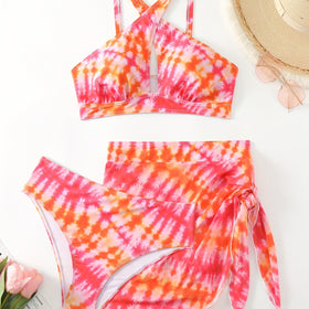 Trendiger Damen-Bikini mit Wickelrock und angesagtem Muster