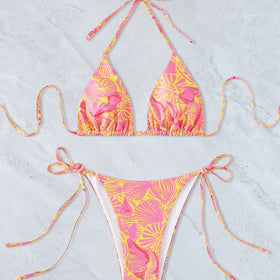 Das Femme Triangle Bikini Set mit verstellbaren Bändern – ein perfekter Sommerbegleiter. Dieses farbenfrohe zweiteilige Set besticht durch einen auffälligen Druck.