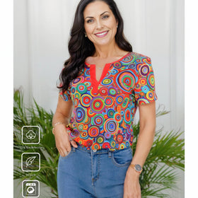 Trendiges Naturlux Kurzarm-Top in bunten Farben