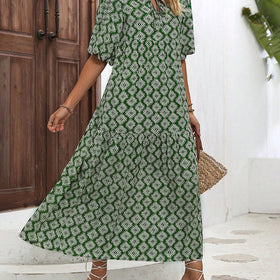 Stilvolles Damen Freizeit Maxikleid mit einzigartigem Mustermix von MODEGEIST. Elegant und komfortabel für entspannte Tage oder Sommerausflüge.