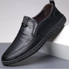 Erleben Sie ultimativen Komfort und Stil mit unseren UrbanEase Lederslippern. Diese Herrenschuhe aus echtem Leder sind atmungsaktiv, rutschfest und bequem.