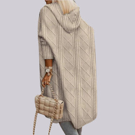 Der Uxue | Langer Cardigan mit Kapuze vereint Eleganz und Funktionalität. Ideal für kühle Tage, bietet er Komfort und Stil. Die Kapuze wärmt zusätzlich, das lange Design sorgt für eine schmeichelhafte Passform. Perfekt für jede Gelegenheit.
