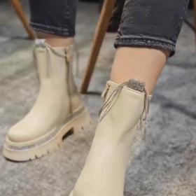 Velvit Pailletten-Leder-Casual-Stiefel – Glanz und Komfort