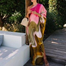 Die Annalena Robe überzeugt durch ihren raffinierten, schrägen Kragen und ihre feminine Silhouette. Weicher, fließender Stoff sorgt für angenehmen Tragekomfort – ideal als Loungewear oder verführerischer Abendlook.