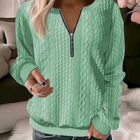 Der Viktoria Strickpullover mit Reißverschluss kombiniert Stil und Komfort für die kalte Jahreszeit. Dank seines hochwertigen Materials hält er dich warm, ohne auf modischen Chic zu verzichten. Mit seinem zeitlosen Design und den eleganten Strickmustern ist dieser Pullover der perfekte Begleiter für deinen Alltag oder entspannte Abende.