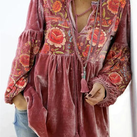Tauchen Sie ein in eine Welt voller Vintage-Charme mit dem Camilla Vintage Pullover mit V-Ausschnitt.