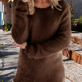 Schlüpfe in diesen gemütlichen Langarmpullover und genieße Wärme und einzigartigen Stil. Das einfarbige, vintage gestrickte Design vereint Komfort und Raffinesse.