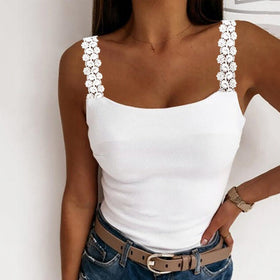 Lassen Sie sich von diesem zauberhaften, ärmellosen Cami-Top in leuchtendem Weiß verführen. Entworfen für sonnige Tage, besticht es durch luftige Eleganz und Frische.