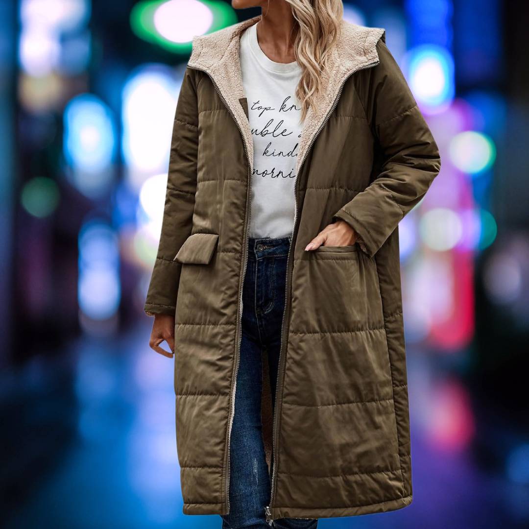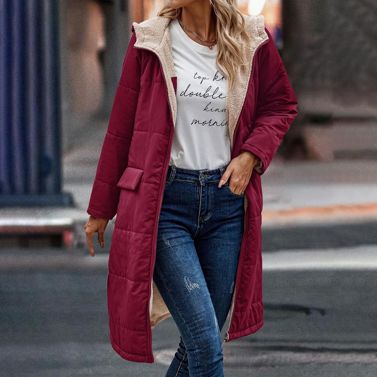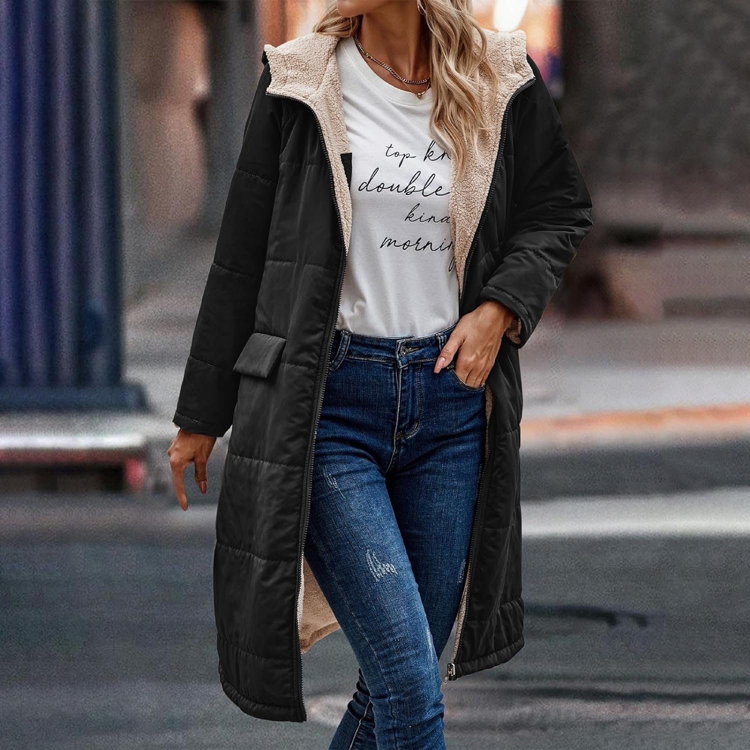Bleiben Sie stilvoll und warm an kühlen Herbst- und Wintertagen mit unserem Damen Wendemantel mit Kapuze. Dieser vielseitige Mantel kombiniert Komfort und Funktionalität und bietet die perfekte Balance zwischen Mode und Kälteschutz. Das wendbare Design ermöglicht einen einfachen Stilwechsel. Ideal für Outdoor-Aktivitäten oder den Alltag – ein Must-have.