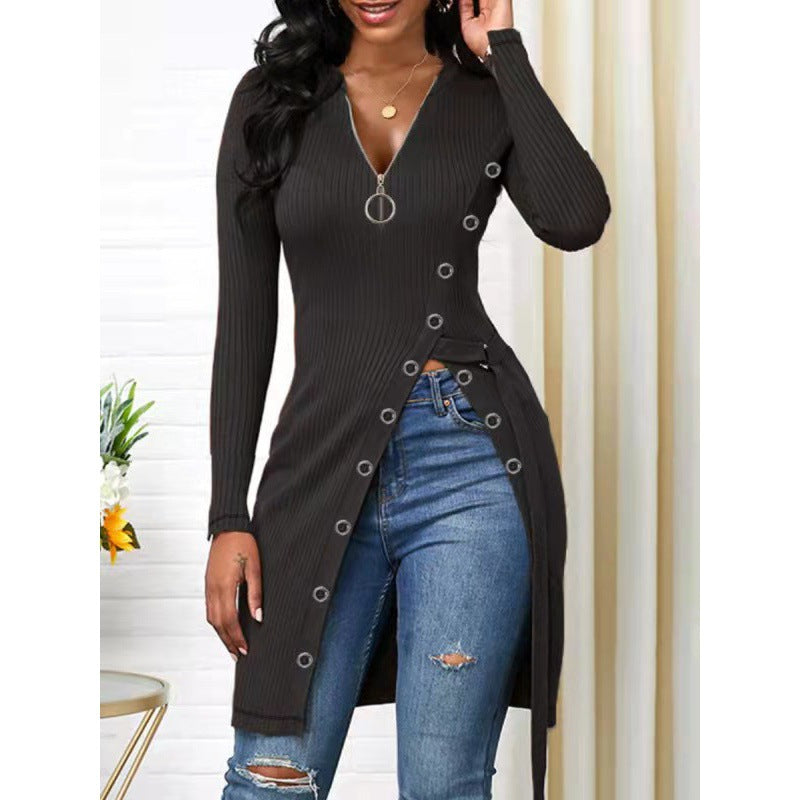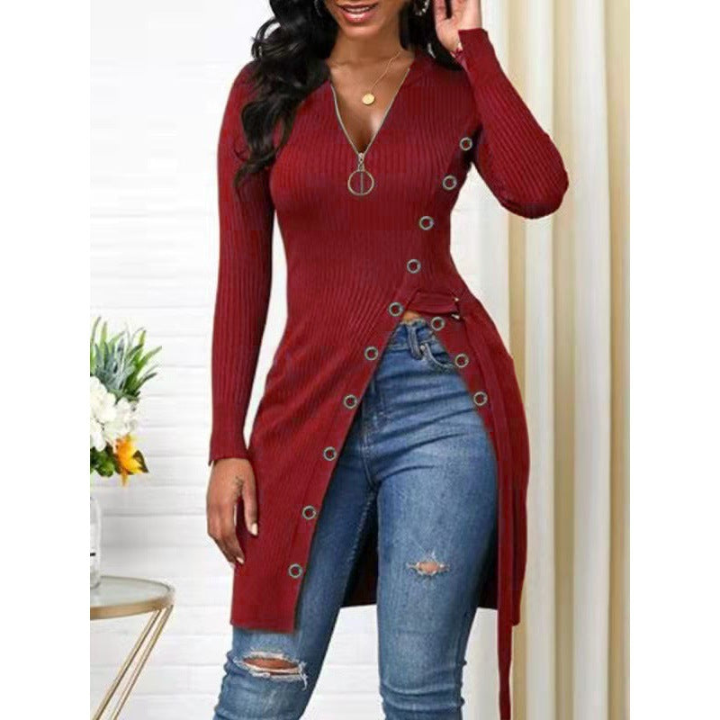 Wickeloberteil für Damen, Langarm, mit Knopfleiste, MODEGEIST