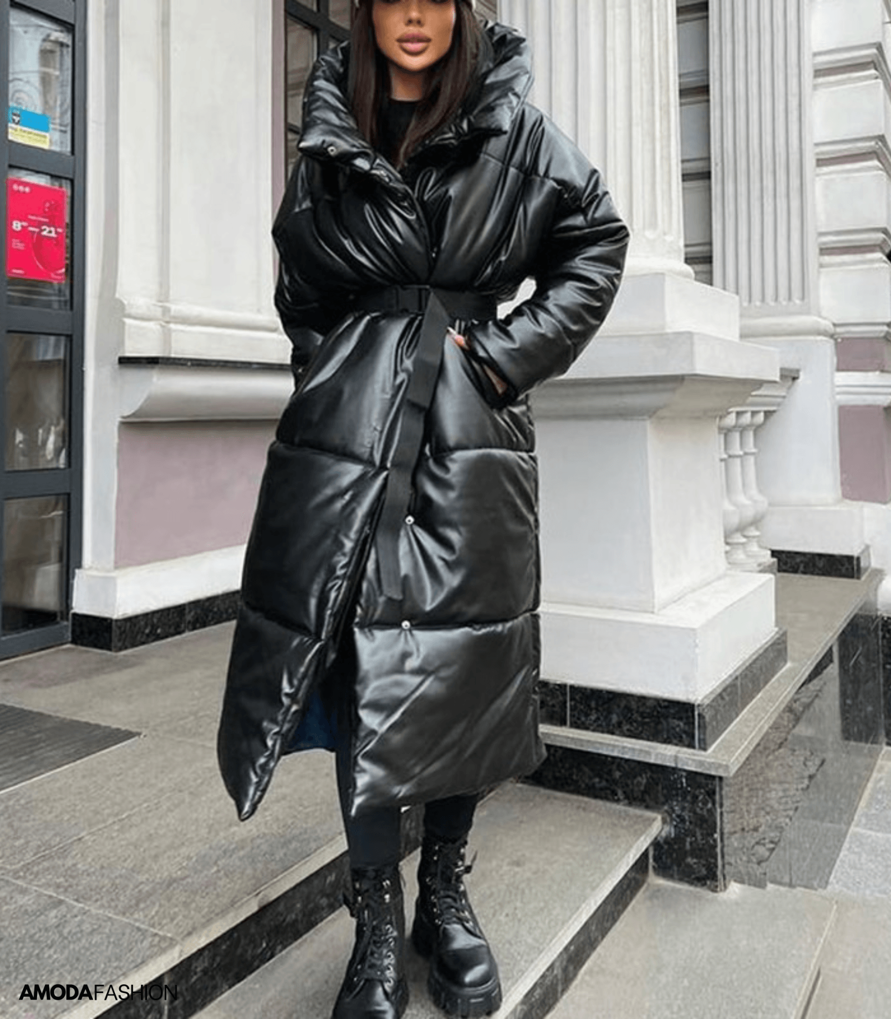 Deshalb gehört "Yieleta | Lange Leder-Pufferjacke mit Gürtel" in Ihren Kleiderschrank: