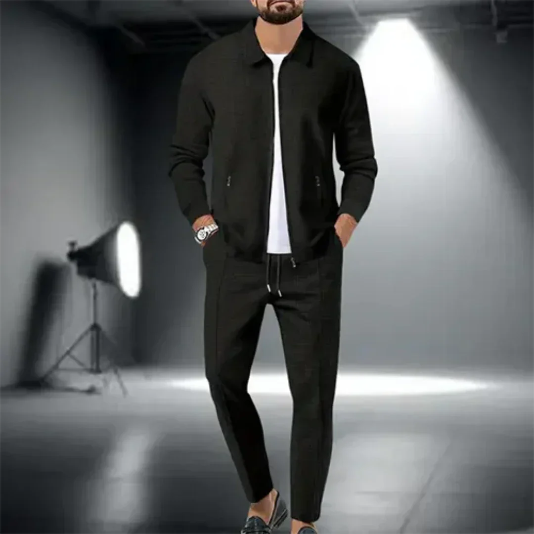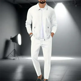 Das Herrenoberteil mit langen Ärmeln und die Hose sind ideal für modebewusste Männer, die Komfort und Stil schätzen. Dieses zweiteilige Ensemble, bestehend aus Hemd und Hose, eignet sich hervorragend für Büro und formelle Anlässe. Ein Look, der professionell und leger wirkt.
